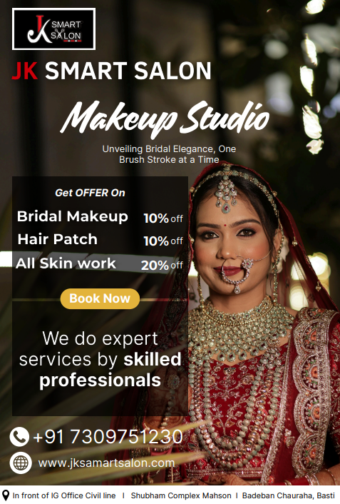 At JK Smart Salon, we believe every individual deserves to feel confident, radiant, and beautiful. Located in the heart of Basti, we specialize in Bridal Makeovers, Hair Patches, and Advanced Skin Treatments, all tailored to enhance your natural beauty.